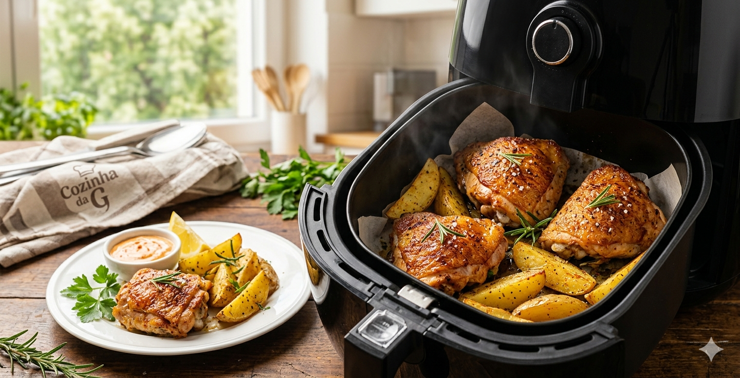 Continue LendoOlá, pessoal da Cozinha da G! 💖 Hoje vamos preparar um prato que é puro conforto e praticidade: o Frango com Batatas na Air Fryer. Esta receita é perfeita para quem ama aquela sobrecoxa suculenta por dentro e cheia de sabor, mas sem a gordura da fritura tradicional. O melhor de tudo? As batatas assam […]