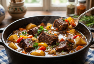 Este prato é a essência da “comida de conforto”. O bife suculento, envolto nos cubos de bacon e linguiça defumada, feijão e queijo puxa-puxa, resulta em uma explosão de sabor e texturas. É o acompanhamento perfeito para o almoço de domingo, o churrasco com os amigos ou até para rechear tacacá. 😍